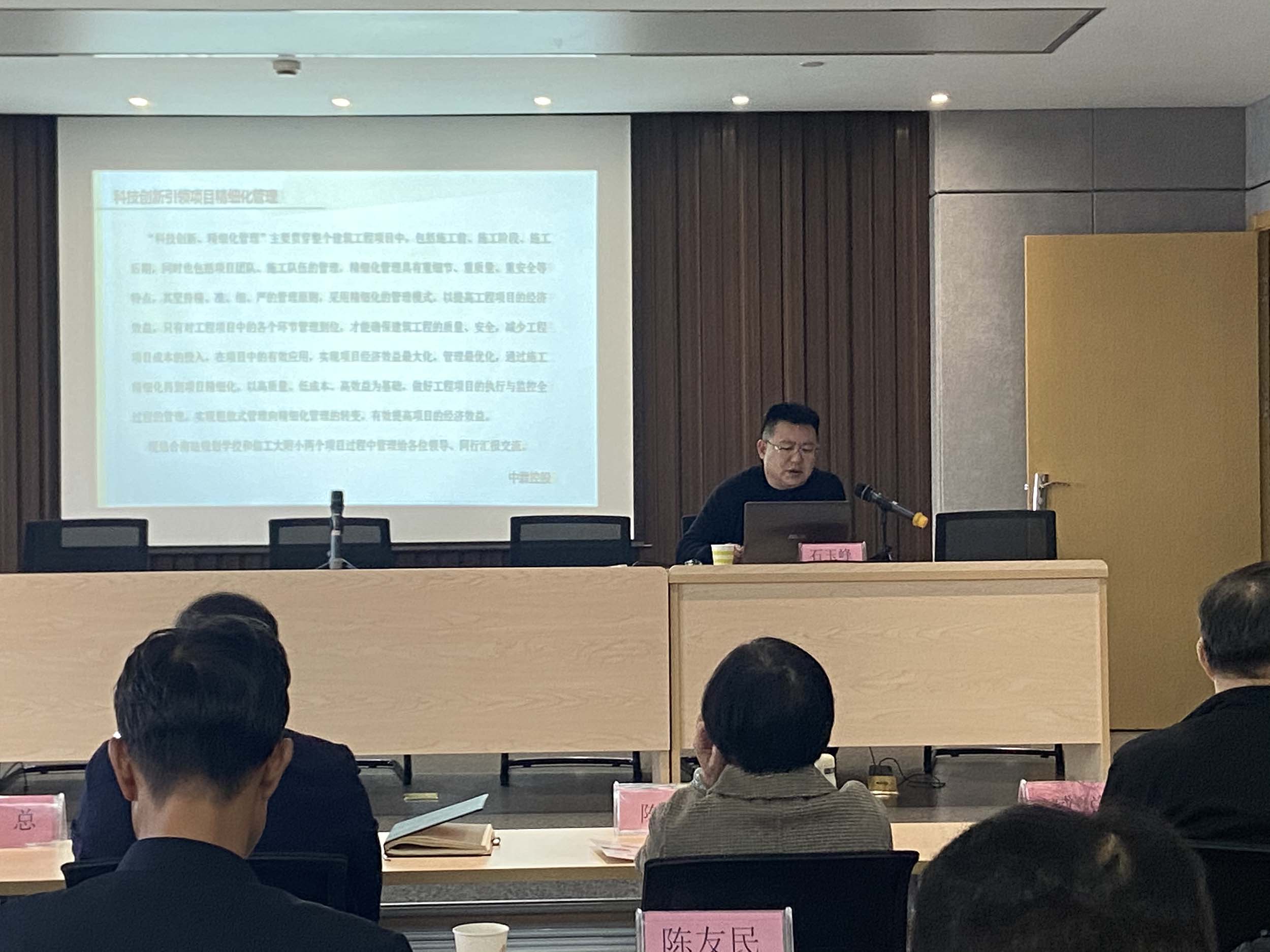 2022年11月19日,八建首屆論壇,項目部經(jīng)理石玉峰作《科技創(chuàng)新引領項目精細化管理》工作交流匯報和經(jīng)驗介紹 -