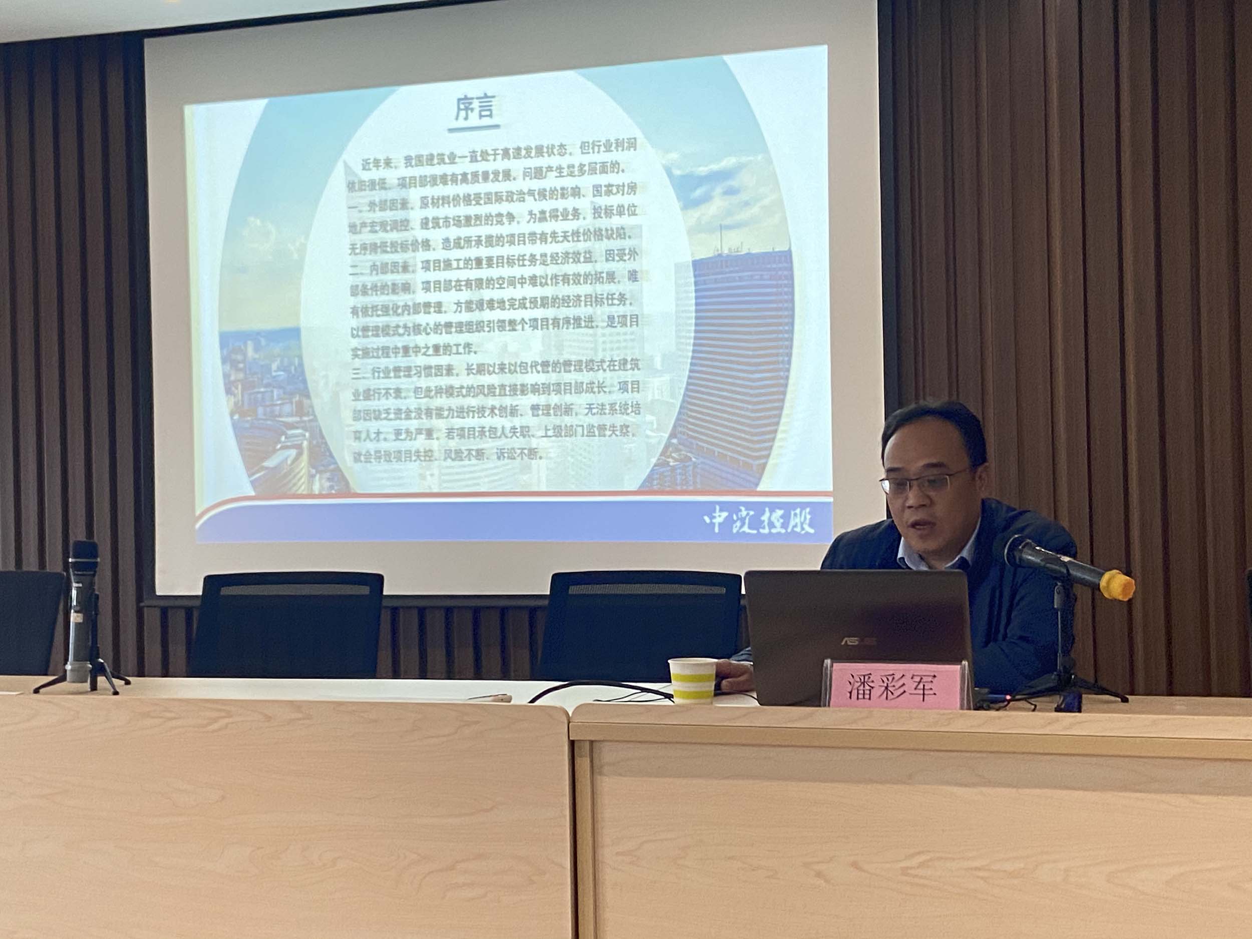 2022年11月19日,八建首屆論壇,項目部經(jīng)理潘彩軍作《項目部股份制管理的探討》工作交流匯報和經(jīng)驗介紹 -