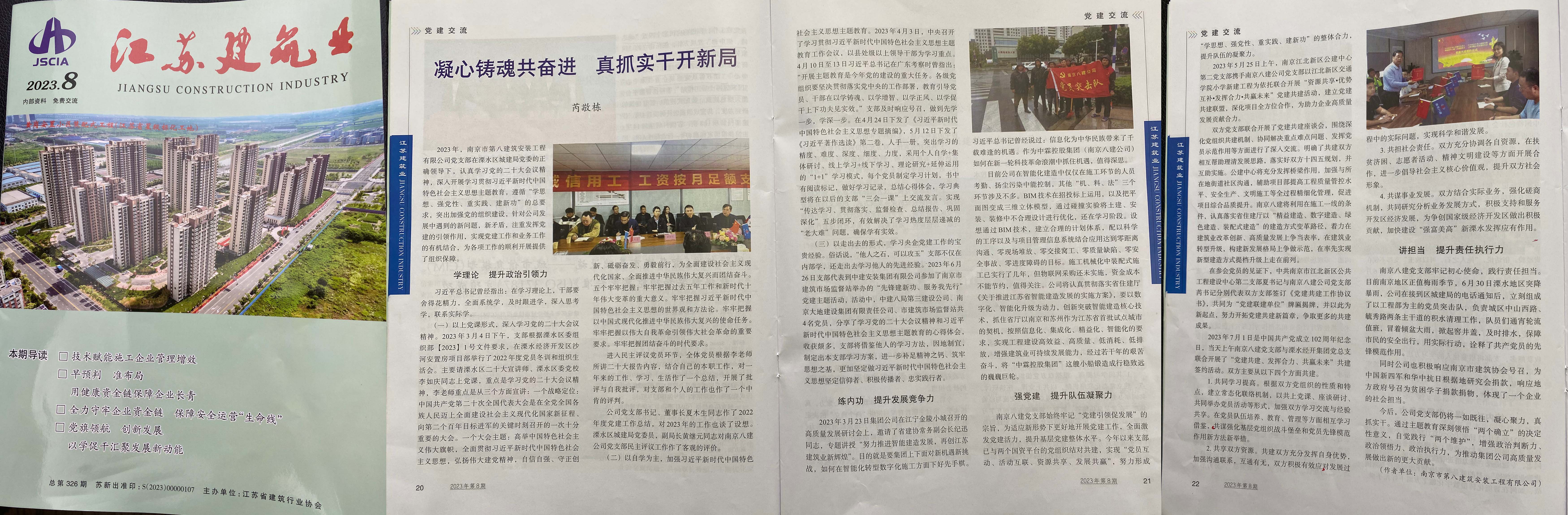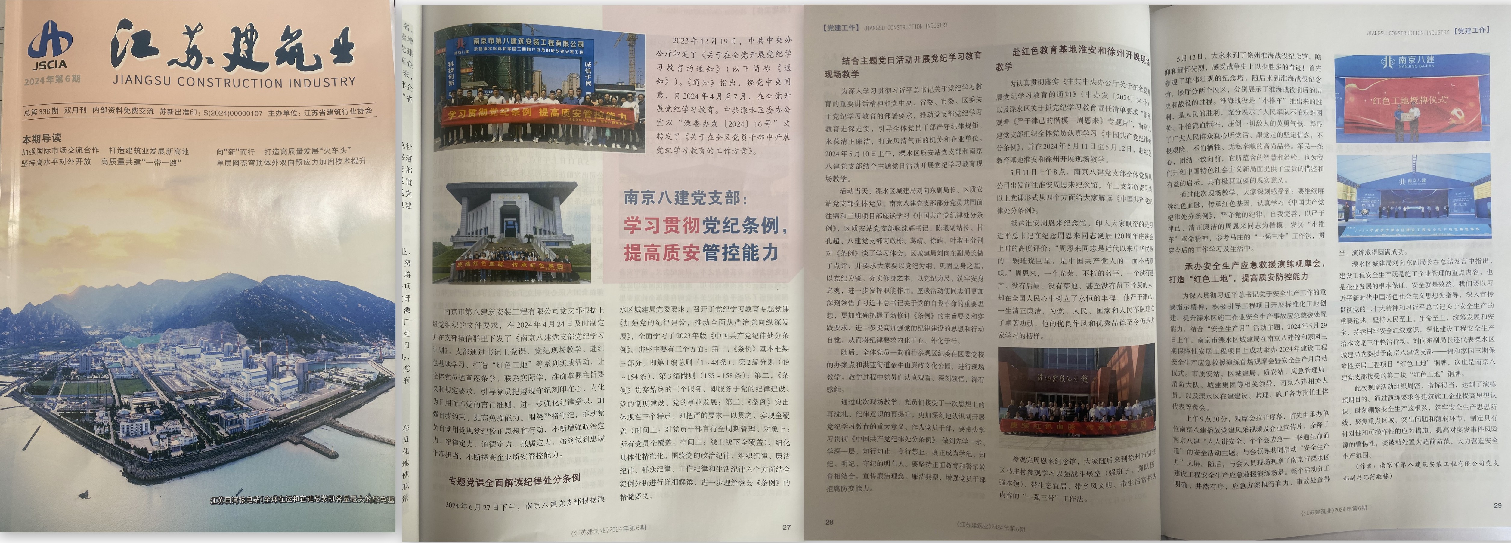 2024年6月,江蘇建筑業(yè)協(xié)會主辦的《江蘇建筑業(yè)》(2024年第6期)刊登了芮敬棟同志《南京八建黨支部:學習貫徹黨紀條例,提高質(zhì)安管控能力》一文 -